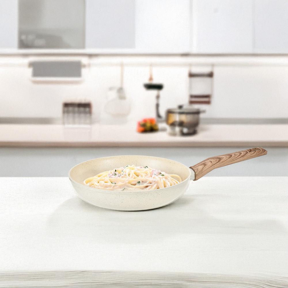 Con revestimiento en Cerámica Antiadherente, libre de PFOA y PTFE, que permite cocinar con menos aceite y facilita la limpieza.