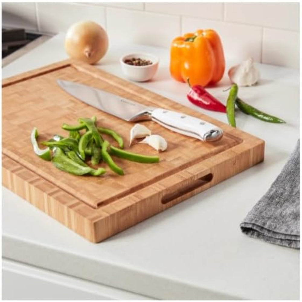 - La tabla de cortar de madera de bambú reversible de grano final de 17 pulgadas cuenta con 2 superficies de corte, ideal para cortar y servir.