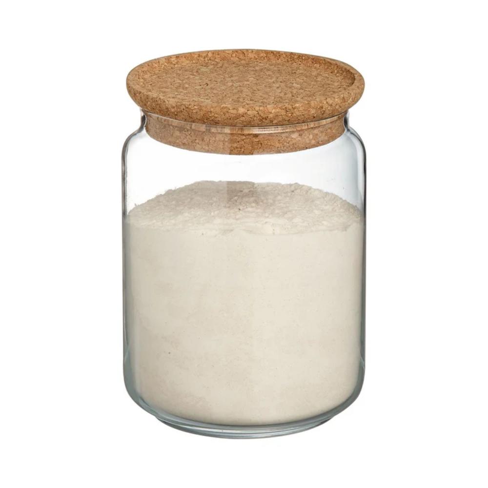 - Tapa de corcho hermética que ayuda a mantener los alimentos secos, frescos y sin transferencia de olor.