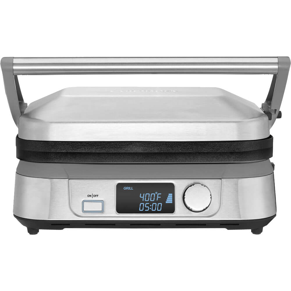 - 5 formas de asar: placas reversibles que se convierten en una parrilla o plancha completa, mitad parrilla/mitad plancha, parrilla de contacto y prensa para panini