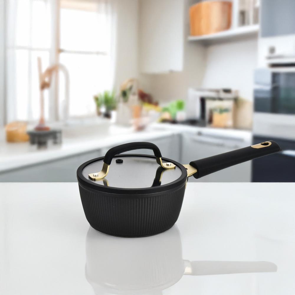 La cacerola Hamilton Beach HBC106BG de 16 cm combina diseño elegante, durabilidad y rendimiento superior. Fabricada en aluminio forjado de alta calidad, garantiza una distribución uniforme del calor y resultados perfectos en cada preparación. Su tapa de vidrio templado permite monitorear la cocción sin perder calor, y su mango ergonómico ofrece un agarre seguro y cómodo. Ideal para cocinar salsas, guarniciones y porciones individuales.