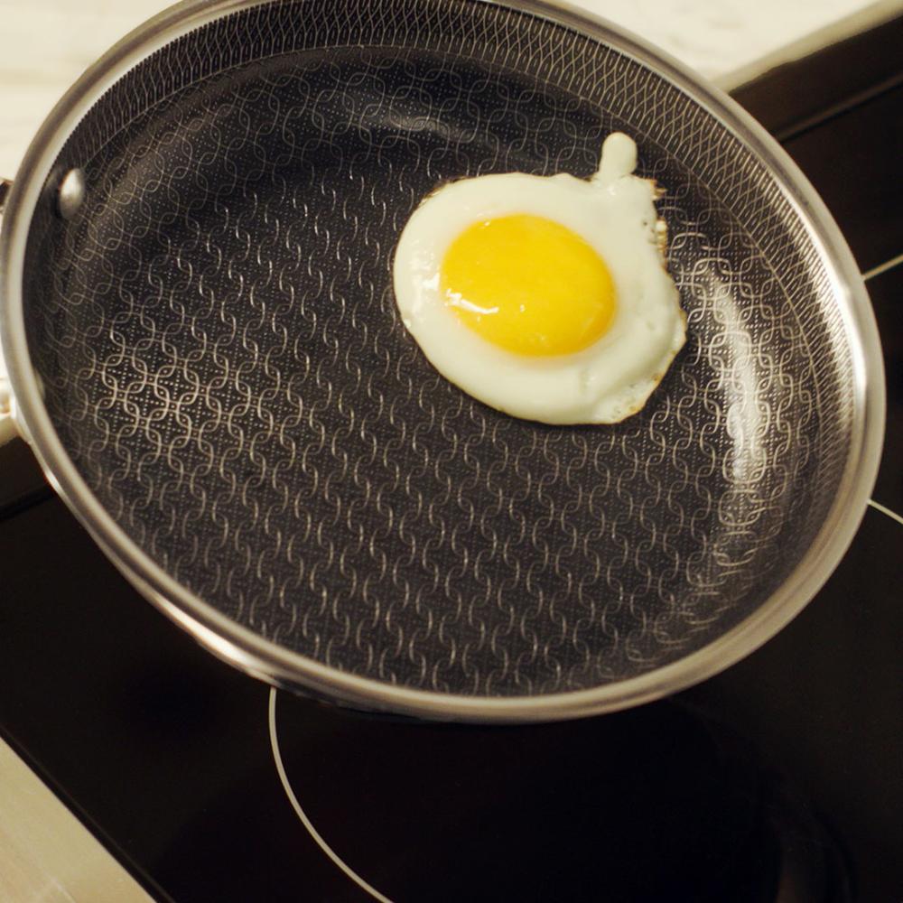 Cuando tomas esa empanada, ese huevo al amanecer, ese trozo de pollo salteado, la sartén te contesta con textura, sabor y rapidez. El acero inoxidable pulido le da presencia, y al mismo tiempo el recubrimiento interno facilita que nada se quede pegado, que cada ingrediente se sienta libre y vivo.