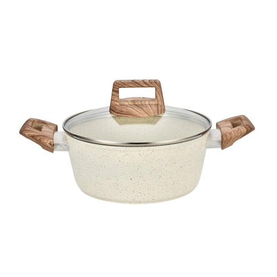 Olla con Asas de 20 cm y Tapa de Vidrio. Antiadherente de Cerámica