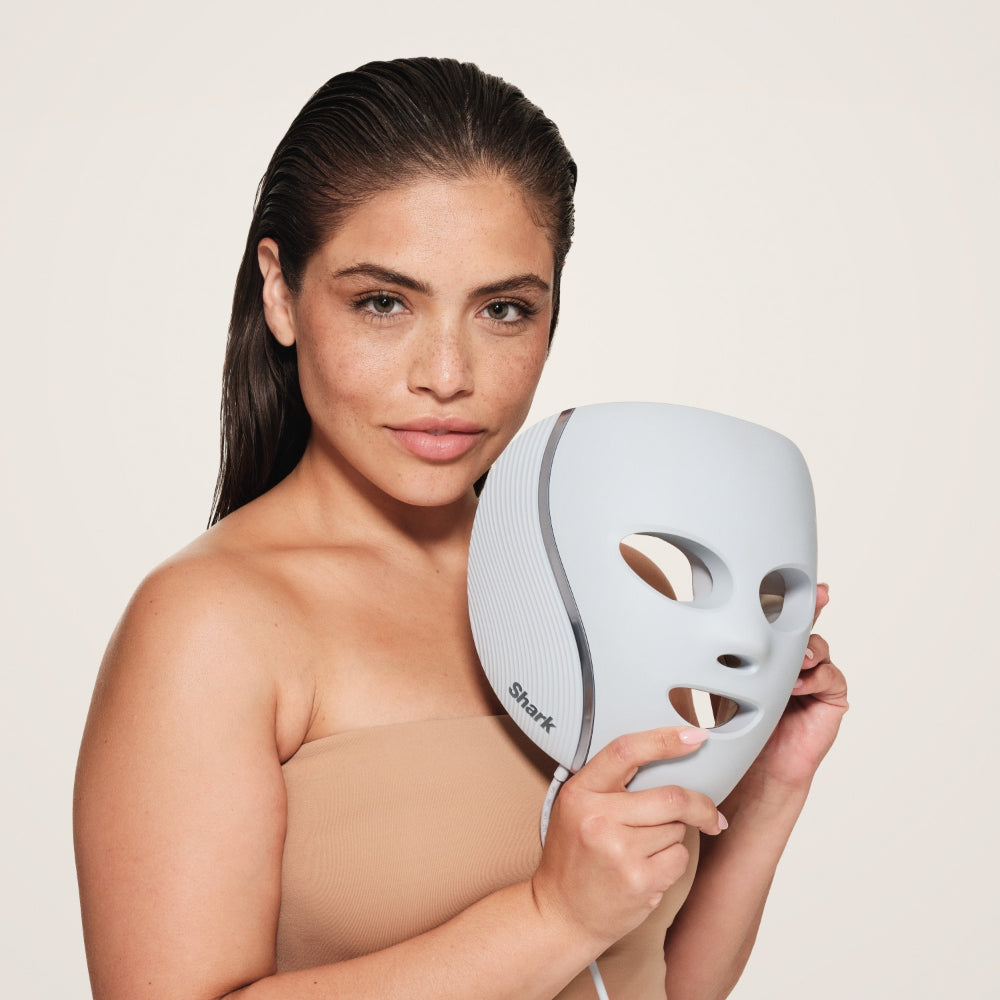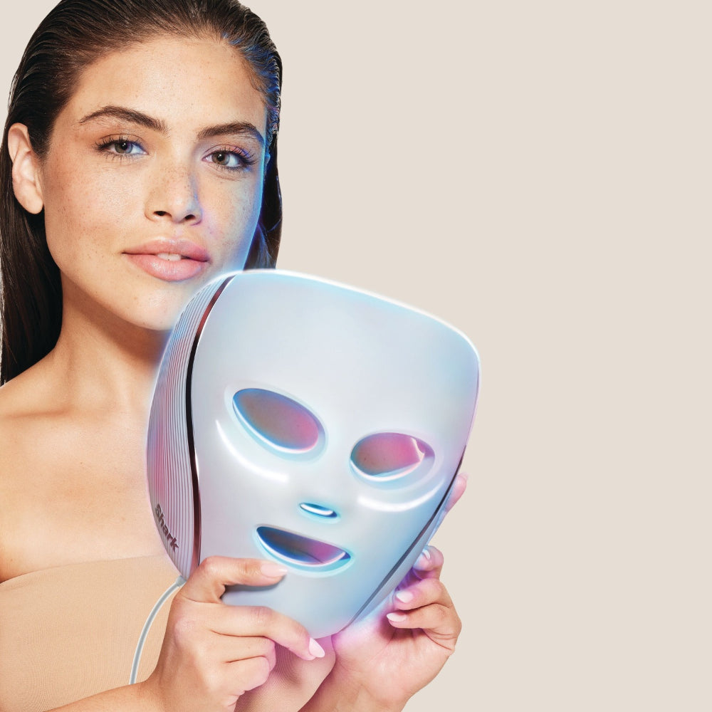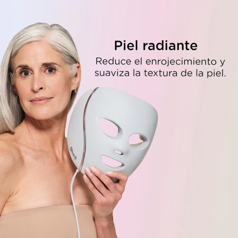 La máscara de luz LED Shark CryoGlow (FW312LAA) es un innovador dispositivo de cuidado facial que combina la terapia con luces LED (roja, azul e infrarroja) con enfriamiento localizado para el contorno de ojos. Diseñada junto a dermatólogos y respaldada por estudios clínicos, ofrece tratamientos multifuncionales en casa para suavizar líneas finas, reducir acné, mejorar el tono de piel y aliviar bolsas o inflamación en el área ocular con solo presionar un botón.