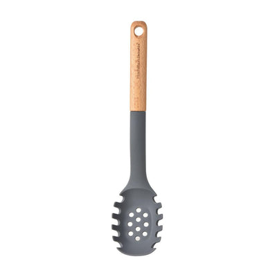 HB Cuchara para Pasta con Colador de Silicone Color Gris, 14" con Mango de Madera
